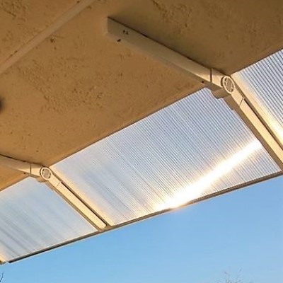 Üregkamrás polikarbonát lemez esetén mind a csavarozás, mind pedig a csúszósínes rögzítési mód szóba jöhet. Az általunk szállított polikarbonát esővédő előtetőknél a csúszósínes rögzítési módot preferáljuk, mely kényelmesebb, biztonságosabb szerelést tesz lehetővé. Előnye azoknál az erkély előtetők esetén domborodik ki, ahol nincs mód, vagy nagyon körülményes a tető megközelítése felülről vagy oldalról. Ugyanis a csúszósínes szerelés esetén a lapokat alulról tudjuk a helyükre tolni.