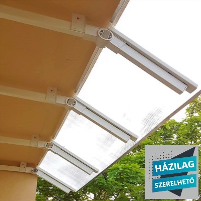Üregkamrás polikarbonát lemez esetén mind a csavarozás, mind pedig a csúszósínes rögzítési mód szóba jöhet. Az általunk szállított polikarbonát esővédő előtetőknél a csúszósínes rögzítési módot preferáljuk, mely kényelmesebb, biztonságosabb szerelést tesz lehetővé. Előnye azoknál az erkély előtetők esetén domborodik ki, ahol nincs mód, vagy nagyon körülményes a tető megközelítése felülről vagy oldalról. Ugyanis a csúszósínes szerelés esetén a lapokat alulról tudjuk a helyükre tolni.